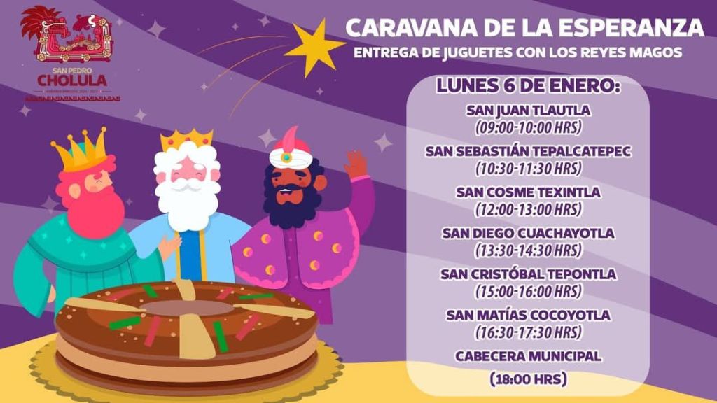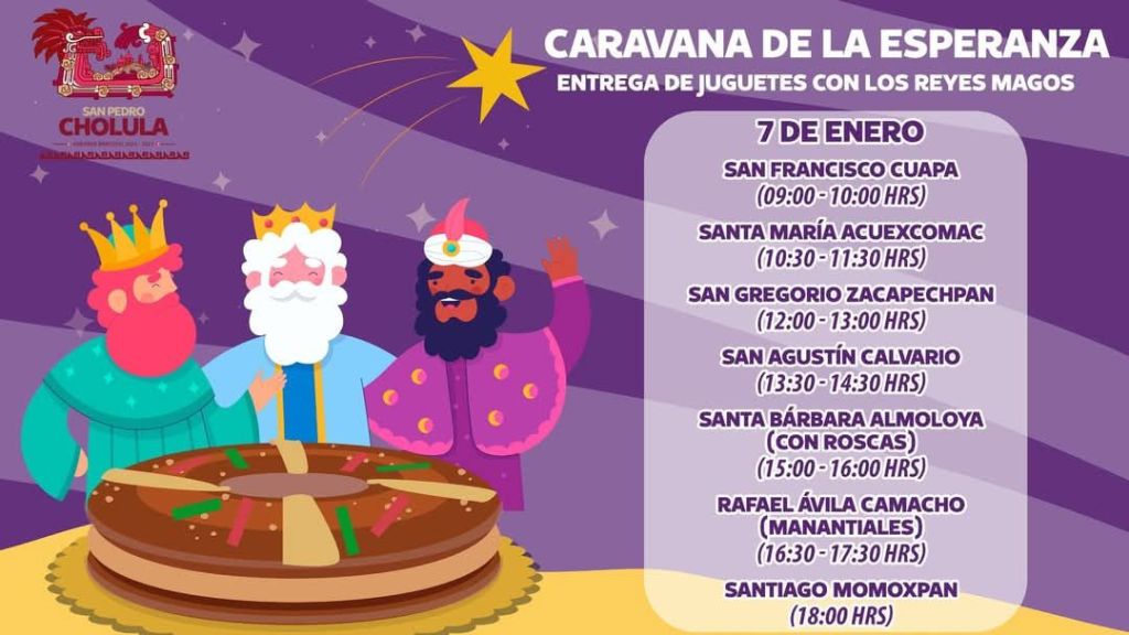 El Gobierno de San Pedro Cholula y la presidenta Tonantzin Fernández los invitan a ser parte de la 🐎🐫🐘 Caravana de la Esperanza este 📆 6 y 7 de enero.