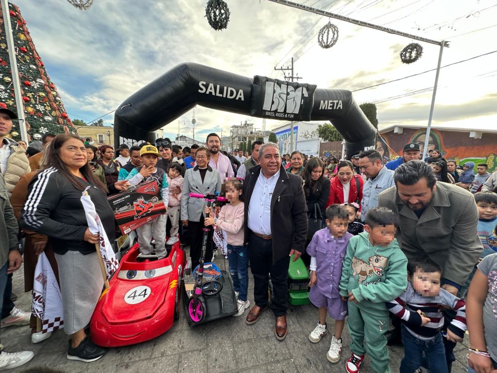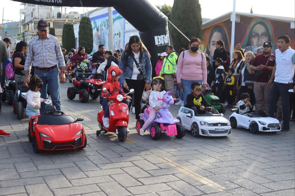 El evento transformó el zócalo de Amozoc en un emocionante circuito de carreras, donde niñas y niños participaron en competencias con bicicletas, carros eléctricos, patines del diablo y triciclos, siempre bajo la supervisión de oficiales de pista que garantizaron la seguridad de cada prueba.