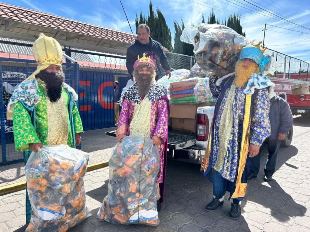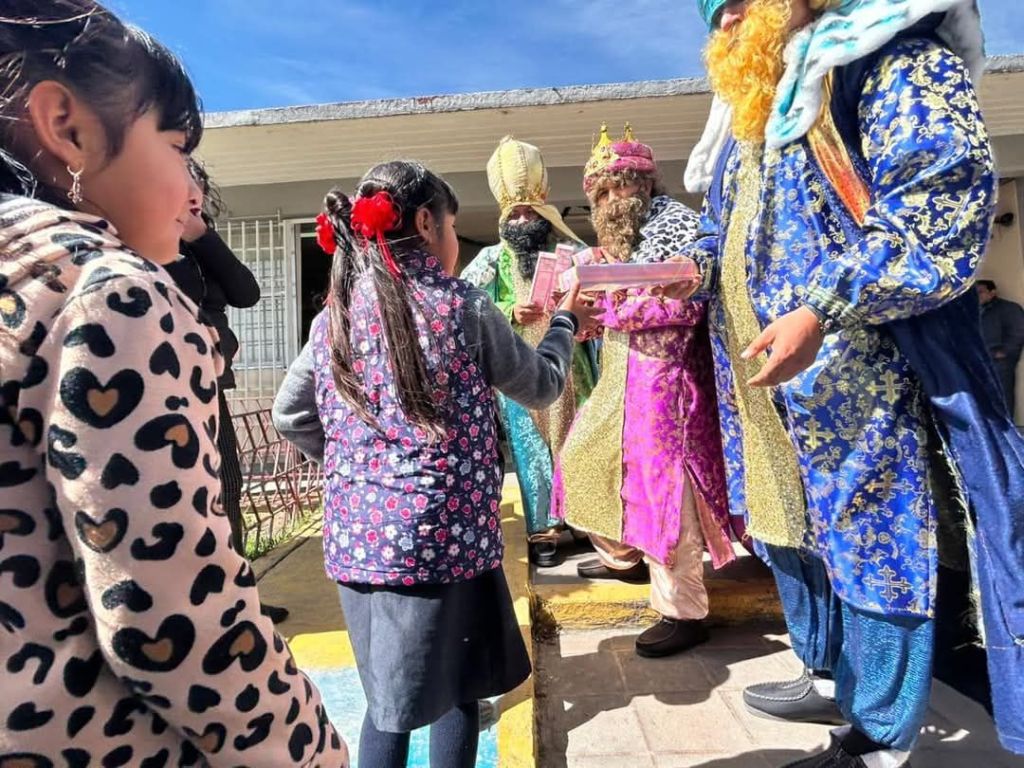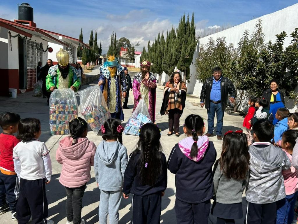 El Gobierno de Calpan 2024-2027 que preside Vicente Sánchez, recorrio en conjunto con los Reyes Magos y personal del Ayuntamiento, diversas escuelas, CAIC y comunidades alejadas de la cabecera municipal, llevando regalos a las niñas y niños de San Andrés Calpan.