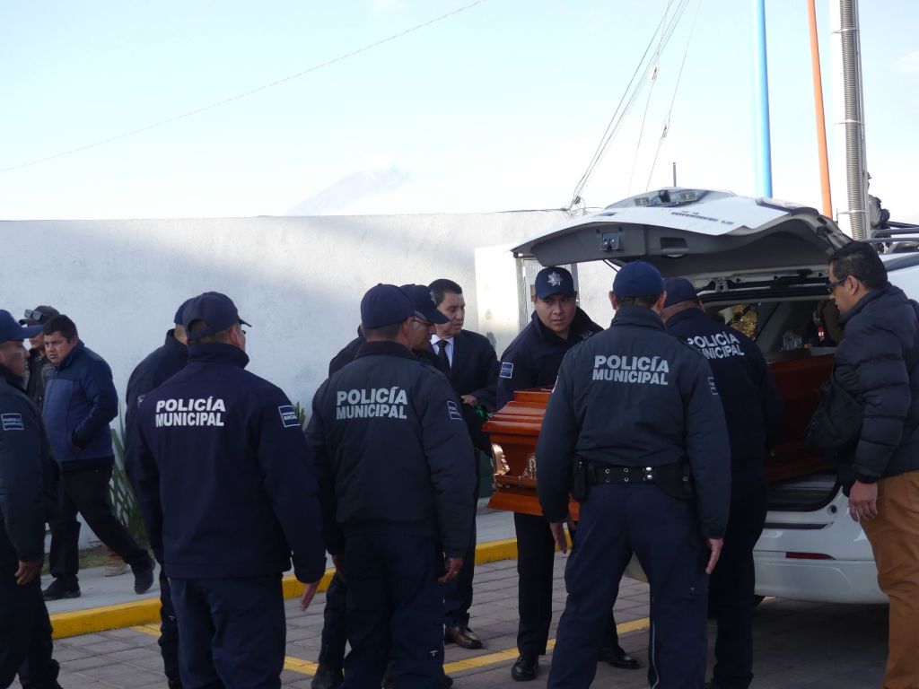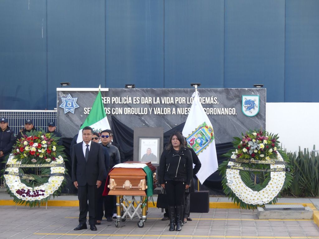 El presidente municipal de Coronango, Armando Aguirre Amaro, encabezó el homenaje de cuerpo presente al policía Juan Carlos Cuautle Tenahua, quien perdió la vida en cumplimiento de su deber.