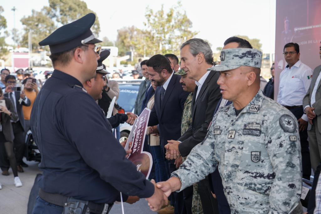 «Y para hacer frente a dicho reto, se adquieren 200 patrullas, para que los oficiales adscritos a esta Secretaría, puedan cumplir con su trabajo dignamente y así, hacer frente al despliegue territorial cuya estrategia resulta relevante», agregó.