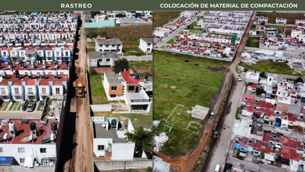 Actualmente, se ejecutan trabajos de rastreo en caminos rurales y calles de terracería; ejemplo de ello es en San José Victoria, colindante con San José La Laguna, donde se lleva a cabo el rastreo y aplicación de material fresado en la calle 13 Oriente, con el objetivo de facilitar el tránsito y mejorar la calidad de vida de las y los vecinos.