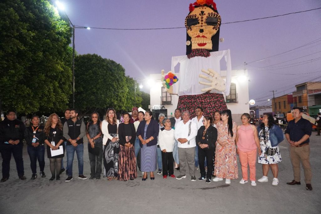De igual manera, se inauguró la primera “Catrina Monumental” en Amozoc, una pieza que resalta el arte, la cultura y las raíces del municipio, elaborada por el grupo de artesanos “Cuna de Artesanos”, a quienes el Gobierno Municipal apoyó con los materiales y reconoció por su creatividad, talento y compromiso con la preservación de las tradiciones.