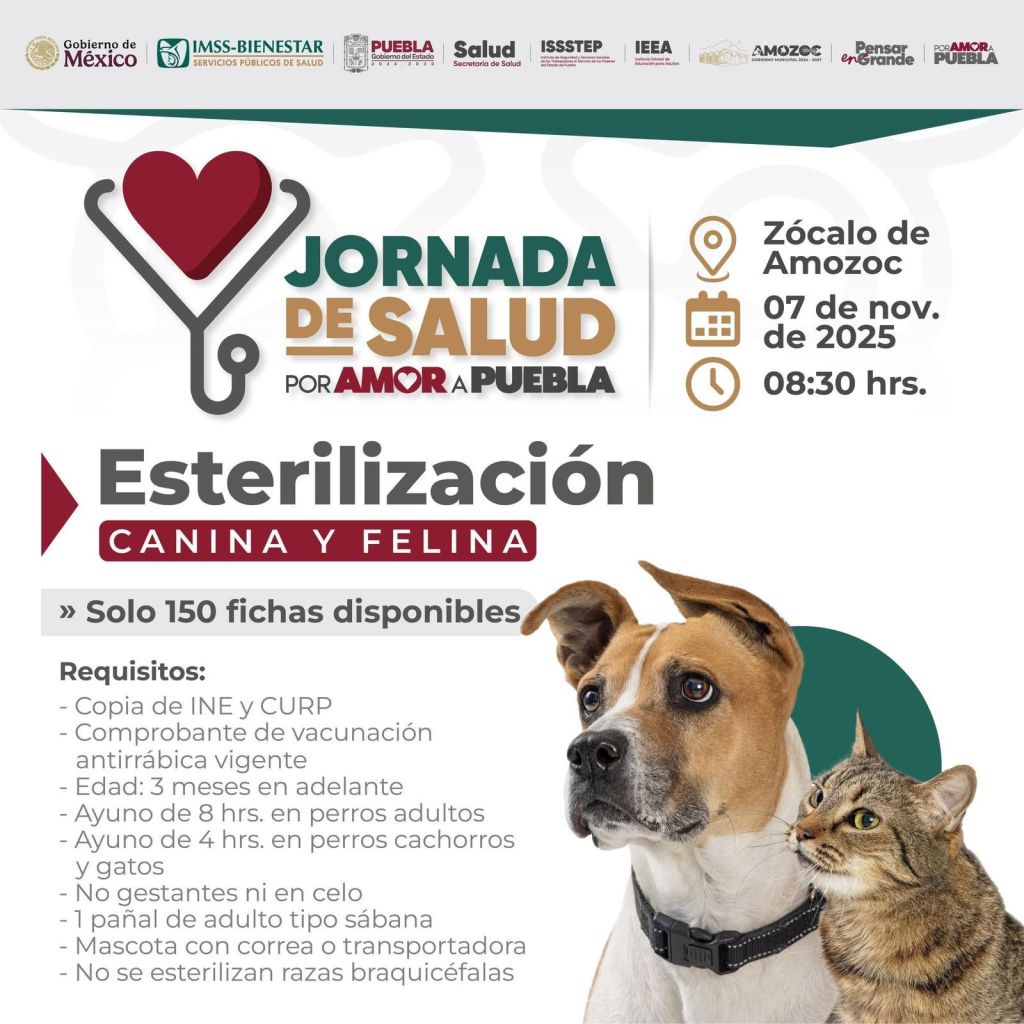 La jornada se realizará el viernes 7 de noviembre de 2025, en el zócalo municipal de Amozoc, a partir de las 08:30 horas, donde se instalarán diversos módulos de atención médica.