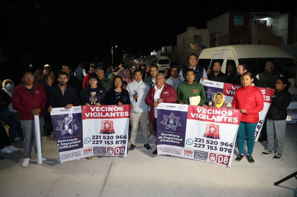 Asimismo, se llevó a cabo una reunión de seguridad, mediante pláticas y acercamiento directo con elementos de la Policía Municipal, adscritos a la Secretaría de Seguridad Ciudadana de Amozoc, quienes entregaron lonas del programa Vecinos Vigilantes, fortaleciendo la participación ciudadana y las acciones de prevención del delito.